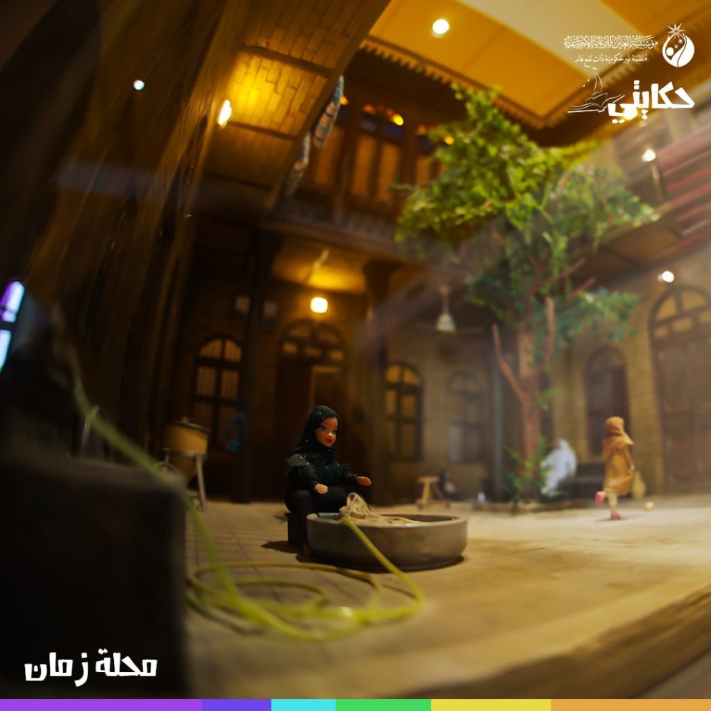 محلة من المحلات البغدادية لا يتجاوز حجمها عدة أمتار تعرض نمط الحياة ومظاهر من التراث بأشكال ومجسمات مصغرة تمت صياغتها بطريقة فنية ذات طابع إحترافي لكي يتاح لأبناء العين في مركز حكايتي الإطلاع على صورة من صور المجتمع و جزء من ثقافته.