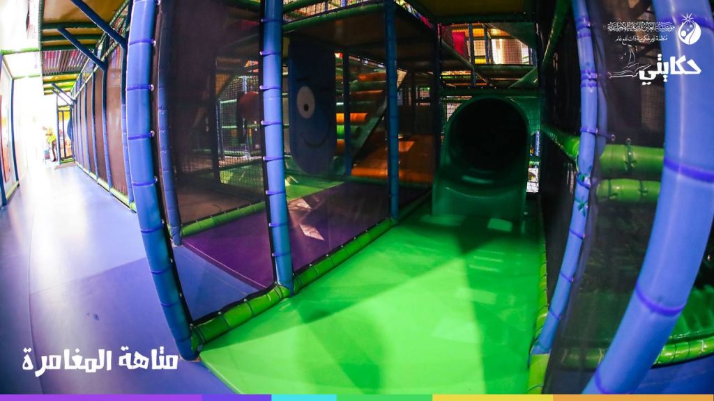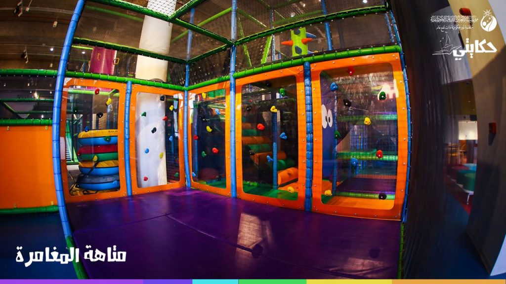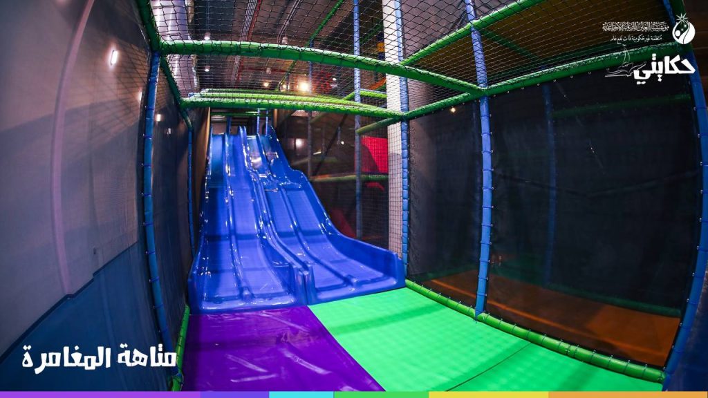 صُممت صالة الالعاب الداخلية ضمن مركز حكايتي بشكلٍ مُبتكر على يد شركات عالمية رائدة في مجال الألعاب والترفيه وجُهزّت بأحدث الألعاب والتقنيات الترفيهية لتلبية احتياجات ورغبات اليتامى الصغار في اللعب وقضائهم وقت ممتع ومفيد ضمن المركز بمساعدة فريق استشاري متخصص من الخبراء النفسيين والتربويين يسعونَ لتنمية قدرات الأطفال وتعزيز ثقتهم بأنفسهم