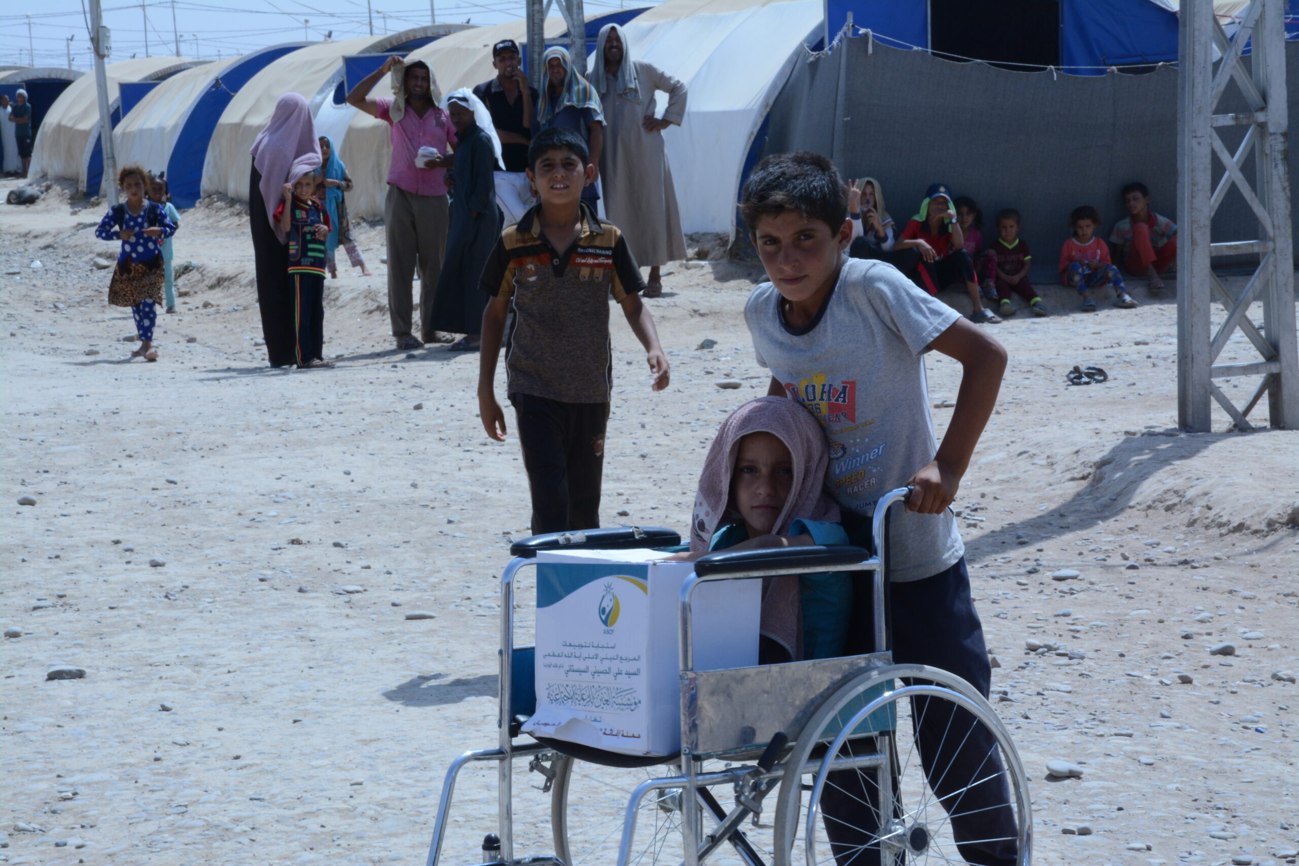بعد دخول تنظيم داعش الإرهابي العراق في سنة 2014 وإحكام سيطرته على عديد من المحافظات الشمالية والغربية منه، ظهرت أزمة جديدة في البلد ألا وهي أزمة النزوح الجماعي. فقد نزحت آلاف العوائل من سكنة تلك المحافظات سعياً إلى النجاة بأنفسهم وأهليهم إلى المناطق الوسطى والجنوبية من العراق وخصوصاً إلى محافظات النجف الأشرف وكربلاء المقدسة والحلة. وقد تفاقمت الأزمة أكثر فأكثر نتيجة التدهور الأمني والاقتصادي للبلد. لذا، كان لا بد لمؤسسات المجتمع المدني من ممارسة دورها الإنساني وتحمل مسؤوليتها الدينية والوطنية تجاه تلك العوائل. وكان في طليعة تلك المؤسسات مؤسسة العين للرعاية الاجتماعية التي حملت على عاتقها هذا الملف إلى جانب ملف الأيتام الذي عملت به منذ عام 2006.
